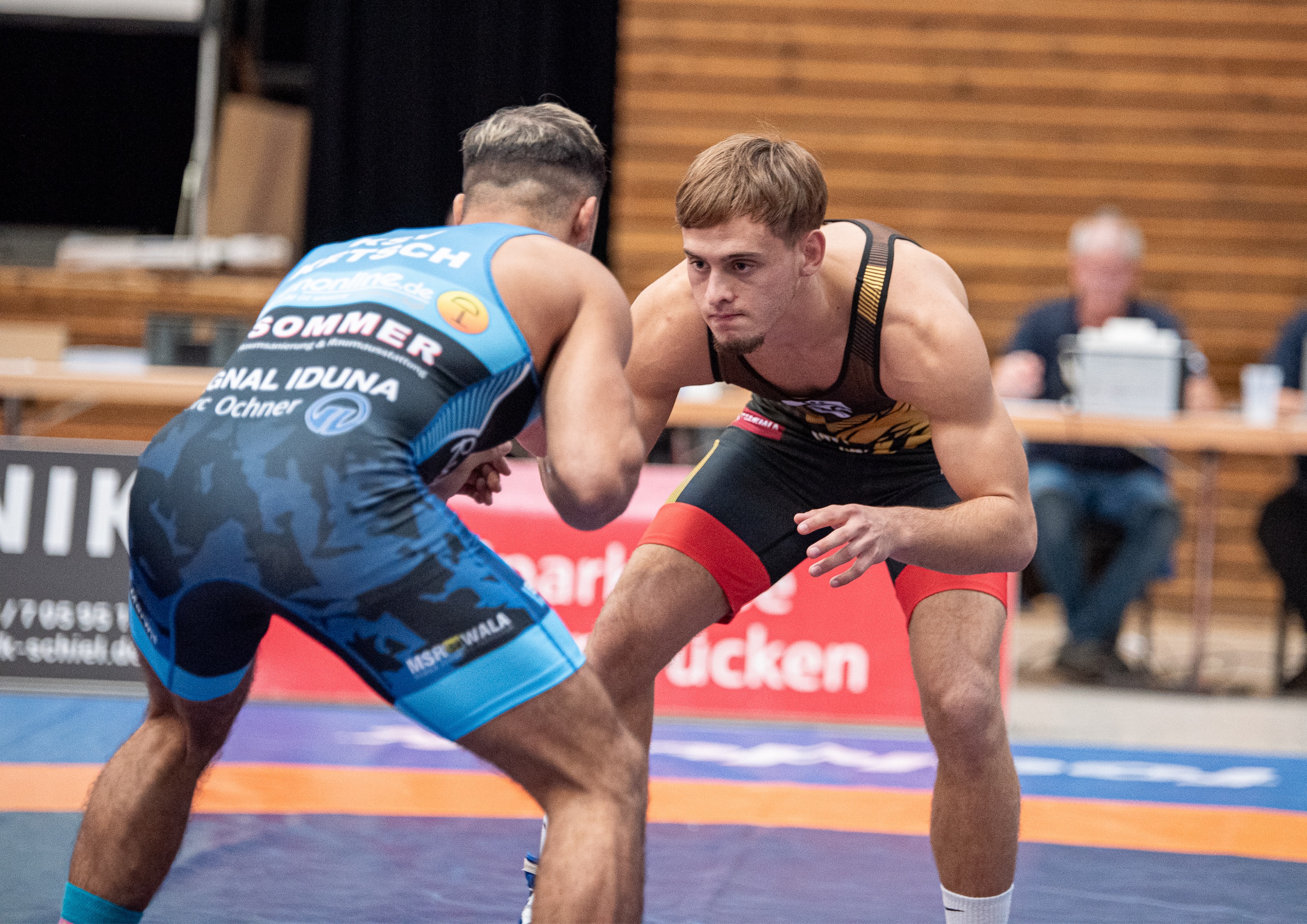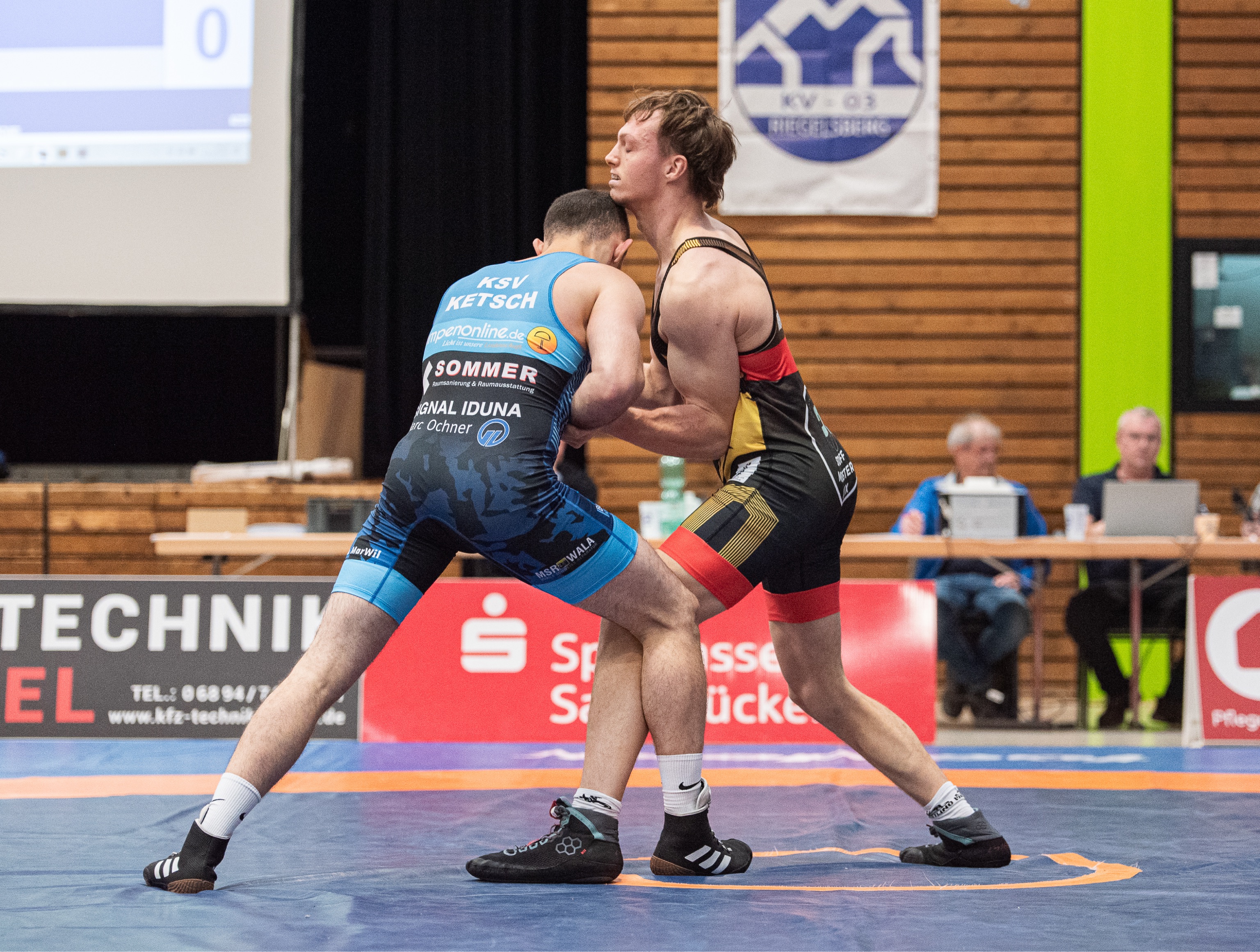 Gegen die starke Mannschaft aus Baden-Württemberg scheiterten die Mattenfüchse jedoch am Ende knapp mit 13:18. Erfreulich jedoch, die angeschlagenen Simon Monz und Joni Khetsuriani rückten in die Mannschaft. Letztgenannter war eben so erfolgreich wie Rassoul Galbouraev, Yoan Dimitrov und Ivars Samusonoks, die allesamt ihre Kämpfe gewinnen konnten.