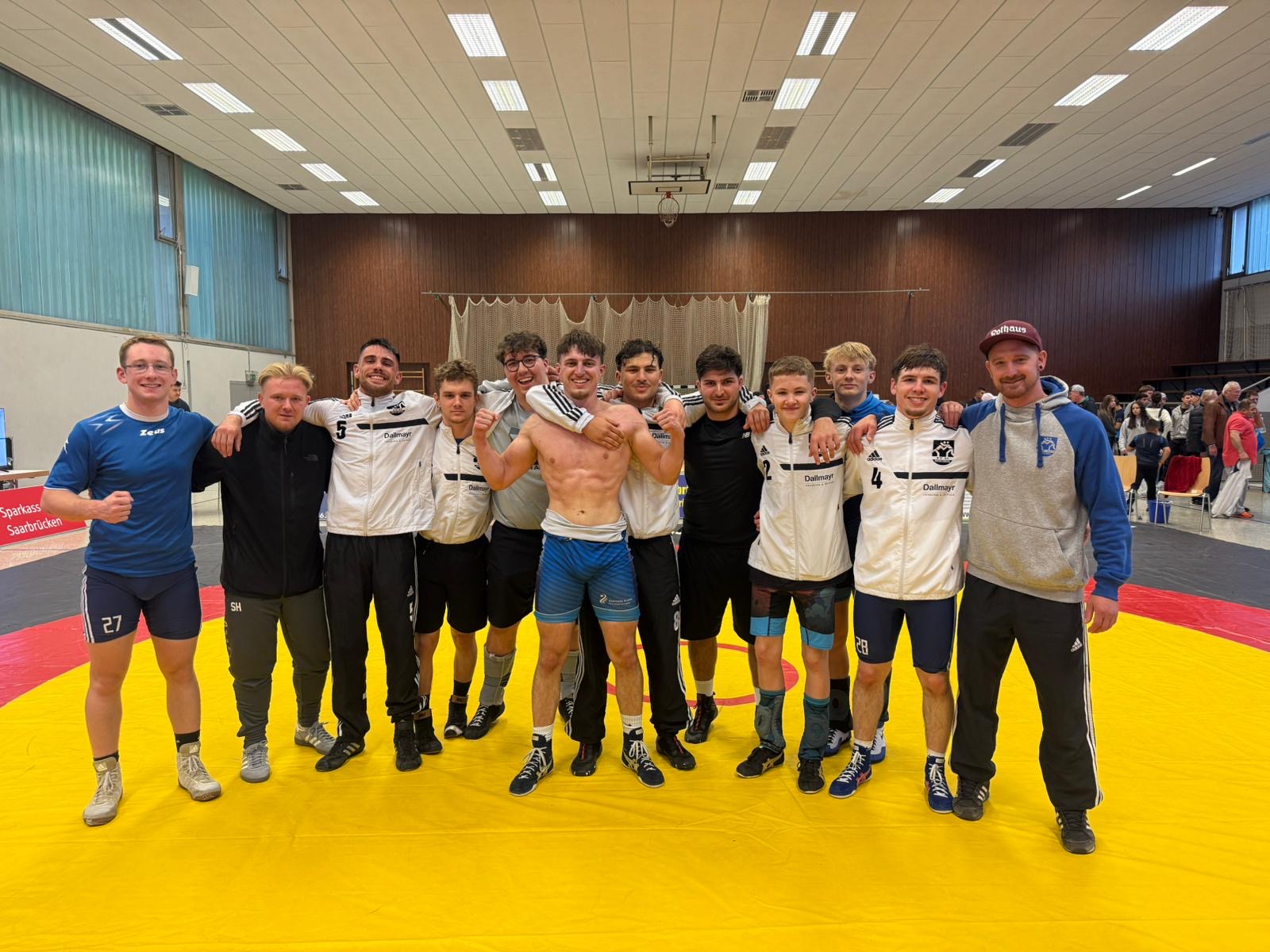 Unsere 2. Mannschaft war am 05.10. zum Oberliga-Auftakt bei der RG Saarbrücken zu Gast. Vor dem letzten Kampf lag unser Team mit 2 Mannschaftspunkten zurück. In einem starken Kampf gelang es dann Maximilian Kohl seinen Gegner zu schultern und sicherte damit, zur großen Freude seiner Teamkameraden und mitgereisten Fans, unserer 2. Mannschaft mit 18:16 den Auswärtssieg!