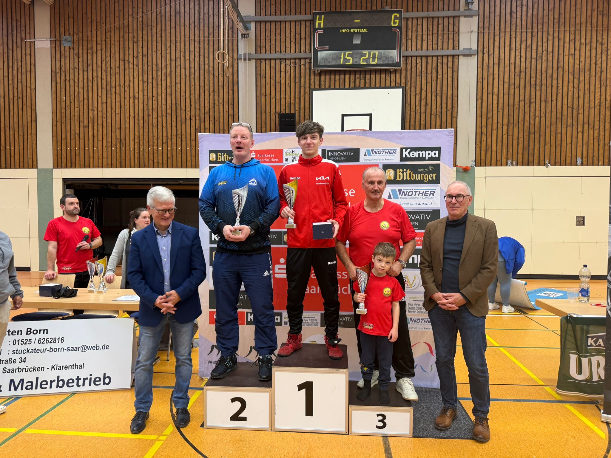 Maksym Yena (49 kg) und Noah Wiersbowsky(59 kg) wurden ebenfalls Saarlandmeister. Weitere Medaillen erkämpften sich Sofia Coliboverdi (39 kg, Silber), Alexander Birn (43 kg, Silber), Vladislav Yena (45 kg, Silber) und Klara Himbert (45 kg, Bronze). Außerdem gingen Emilia Coliboverdi (31 kg, 6. Platz), Kalle Kruber (31 kg, 7. Platz), Johanna Kruber (31 kg, 8. Platz), Anna Wiersbowsky (45 kg, 5. Platz) und Yehor Spolnik (55 kg, 4. Platz) auf die Matte.