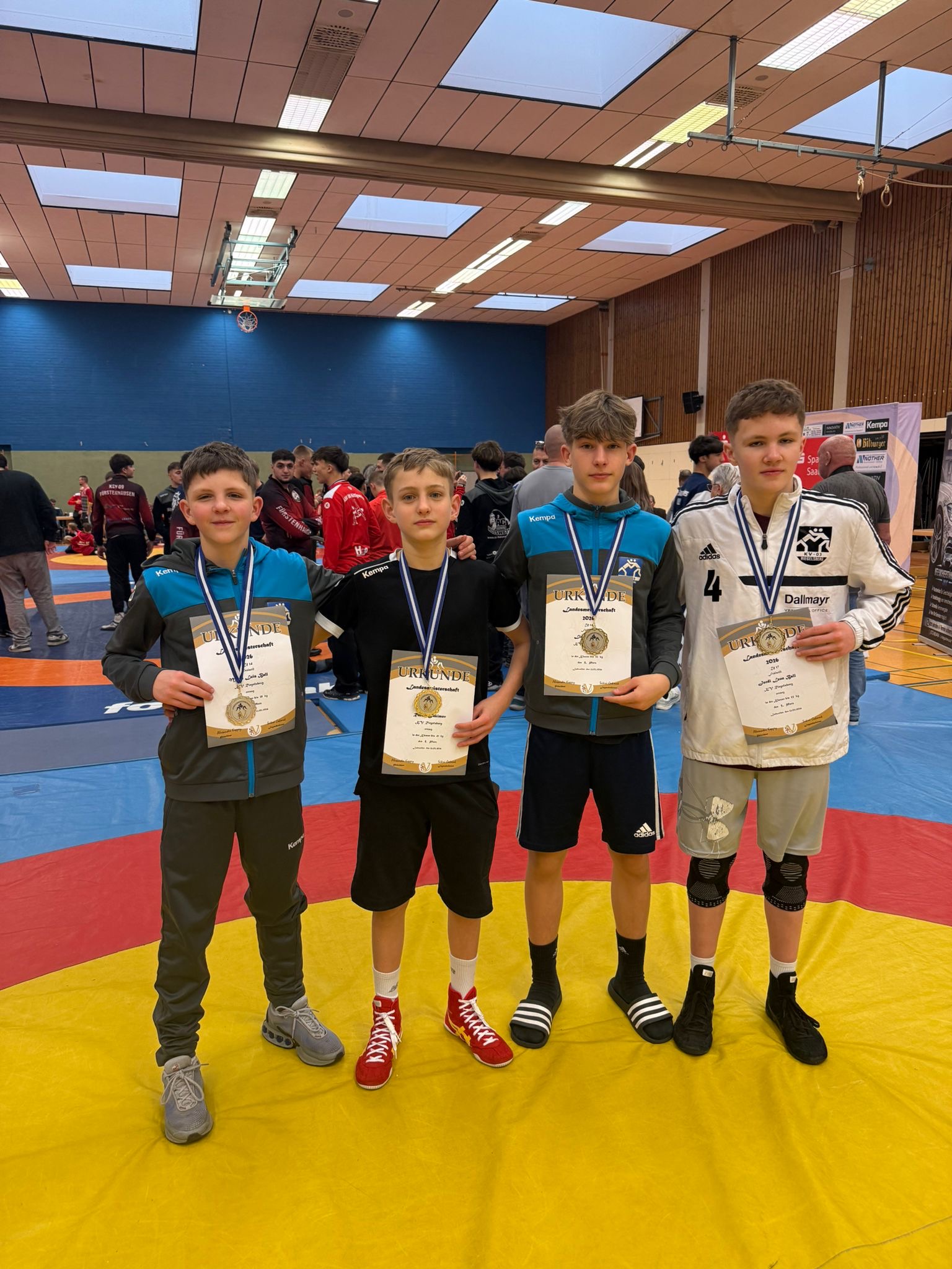 In der U14 wurden Milan Ball (38 kg), Rafael Jakimov (41 kg) und Lionel Hoven (52 kg) souverän Saarlandmeister. Silber ging an Alan Schäfer (35 kg). Bronze gewann Noah Wiersbowsky (62 kg).