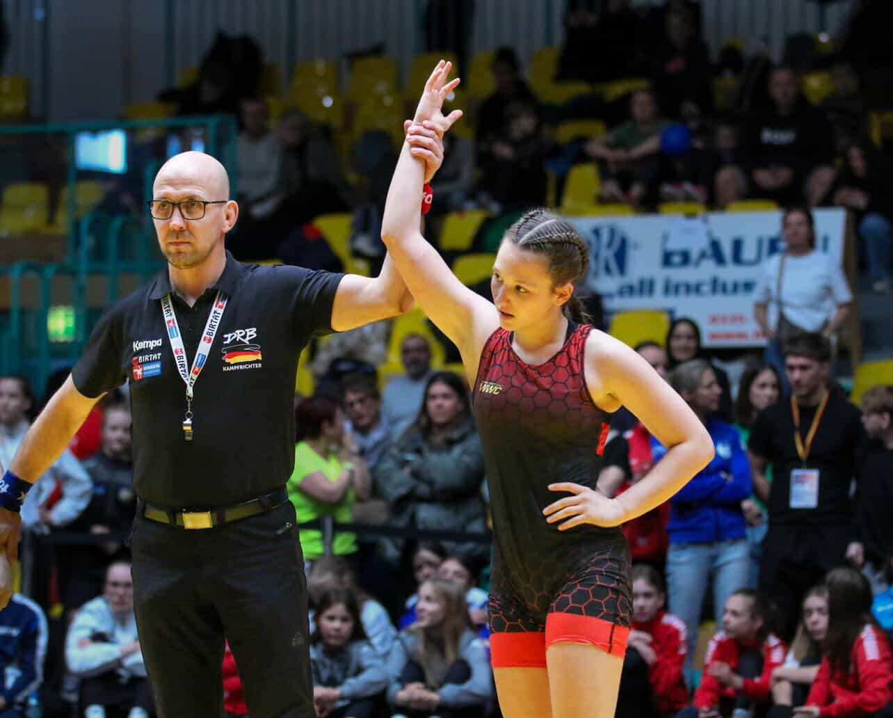 In der Altersklasse U17 (Freistil) bis 57 kg zeigte Emma eine überragende Leistung. Mit fünf Siegen aus fünf Kämpfen blieb sie ungeschlagen und dominierte ihre Konkurrenz eindrucksvoll. Besonders stark: Ihr Punkteverhältnis von 20:1 sowie technische Punkte von 38:1 sprechen eine klare Sprache. Auch gegen Ihre große Konkurrentin Leni Heinicke vom KFC Leipzig konnte Sie denkbar knapp mit 2:1 gewinnen.